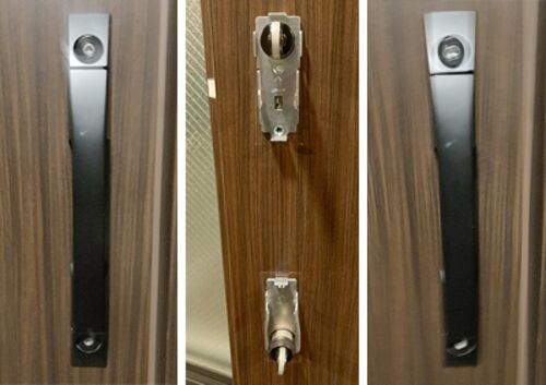 プッシュプル式のノブに付いた「PR PGF(MIWA)」をシリンダー交換